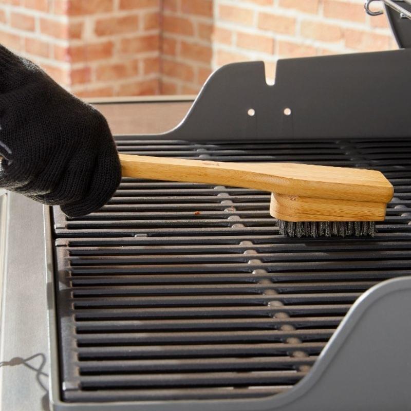 Voor de beste hamburgers moet je zorgen voor een mooi schoon grillrooster. Dat doe je met de Bamboe Grillborstel van Weber. Deze traditionele reinigingsborstel van 46 cm met roestvaststalen haren is zeer stevig en maakt je grillrooster snel schoon. Zo is de borstel gemaakt om gemakkelijk aangebakken voedselresten en vet van het grillrooster te verwijderen. De schuin geplaatste kop zorgt ervoor dat je ook je grillrooster al schoon kan maken als deze nog op temperatuur is.