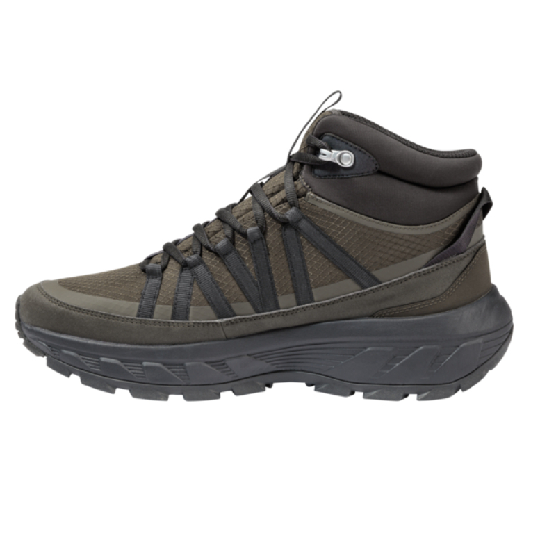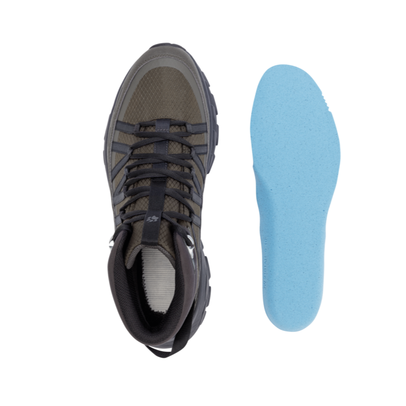DeWild Hike Texapore Mid is voorzien van een lange vetersluiting die doorloopt tot aan de voorvoet. Dit zorgt ervoor dat je de pasvorm goed kunt aanpassen zodat hij perfect aansluit op jouw voet. Met de metalen haak bovenaan kan je de veters strak en stevig vastzetten voor extra stabiliteit. Het EVA-voetbed zorgt voor demping en loopcomfort, zelfs tijdens langere wandelingen.