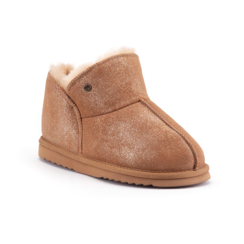 Wist je dat alle sloffen van Warmbat zijn gemaakt van 100% originele Australische Merino schapenwol? Deze Willow suède pantoffel is daarmee lekker warm en ook nog stijlvol! De metalic finish geeft je pantoffel ook nog eens een stoere look! De zool helpt mee om je voeten te beschermen tegen de kou. Daarbij biedt deze zool een goede grip op harde vloeren.