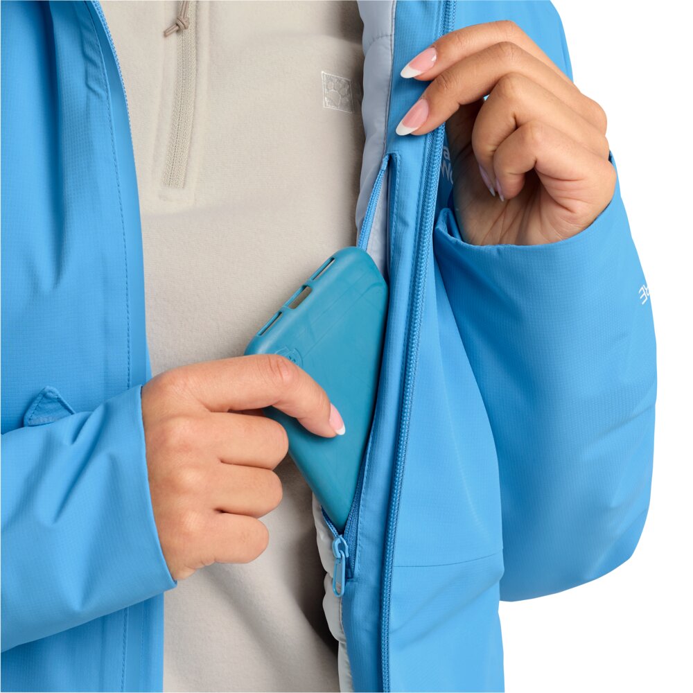 Een heerlijk warme jas voor elke buitenactiviteit. De Wisper jas van Jack Wolfskin heeft een moderne uitstraling en is perfect voor je volgende wandeltocht. Zo heeft deze jas een Primaloft Black Rise-vulling die je altijd goed warm houdt. De zachte Texapore Pro Dobby-stof aan de buitenzijde is winddicht, ademend en heeft een hoge waterdichtheid (waterkolom 20.000 mm). Daarnaast zijn de ritssluitingen waterafstotend. Ook kan je de capuchon en zoom van de Wisper jas verstellen en zo gemakkelijk kleine spulletjes opbergen in de zakken van de jas.
