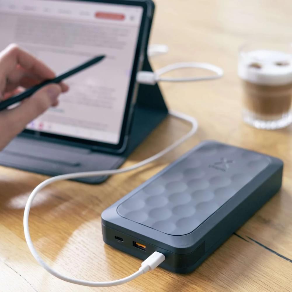Xtorm heeft gekozen om de buitenzijde van de powerbank te maken van gerecycled plastic om zo een steentje bij te dragen aan milieuvriendelijkheid. Een andere pluszijde hiervan is dat de powerbank hierdoor ook beter tegen een stootje kan. Zo kan deze powerbank je lang plezier en stroom blijven geven.