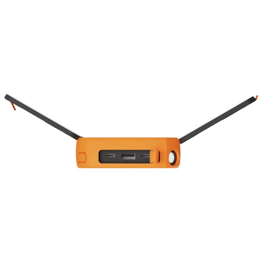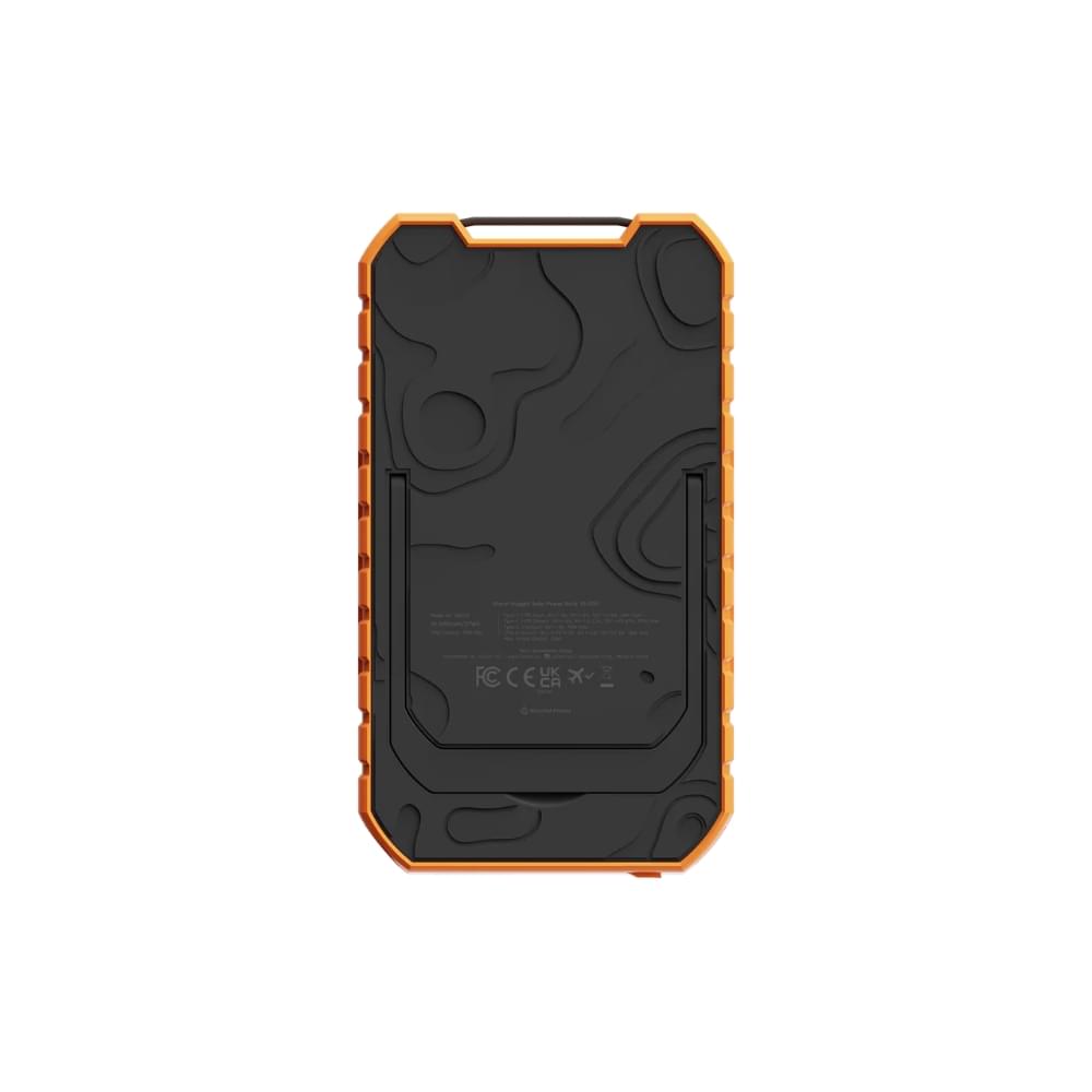 Vervolgens kan je middels een van de drie laadpunten gemakkelijk je eigen apparatuur opladen. Hierbij heb je keuze uit een USB-A poort, een standaard USB-C poort en een USB-C PD poort. En als je wilt kan je ook nog de geïntegreerde LED-lamp gebruiken als je even bij moet schijnen. Daarnaast is de behuizing van de powerbank gemaakt van gerecycled plastic. In combinatie met zijn IP65 schok-, stof- en waterbestendigheid zorgt dit ervoor dat deze powerbank wel tegen een stootje of een spatje water kan.