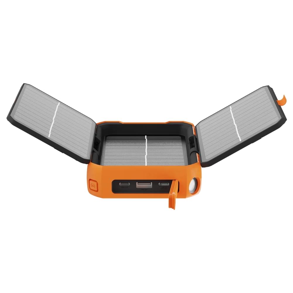 - Robuuste powerbank met geïntegreerde zonnepaneeltjes